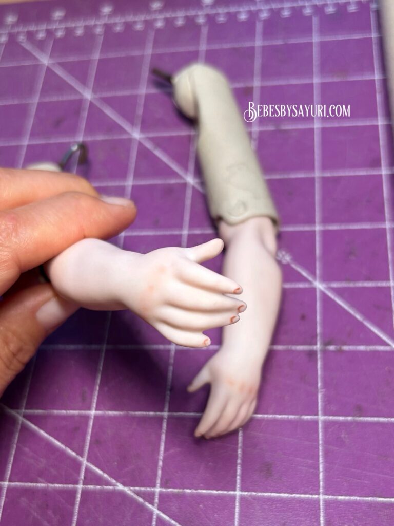 I noticed that the repro arms were one size larger in proportion to the body, so I made a new set of arms on a smaller scale. I also made a new SP because the one with the body had a hairline.