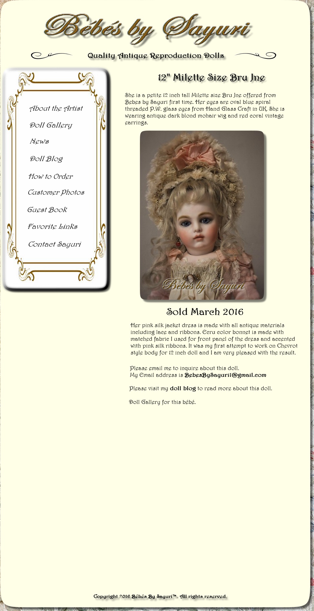 Milette Size Bru Jne 12 inch sold March 2016. Bebes By Sayuri